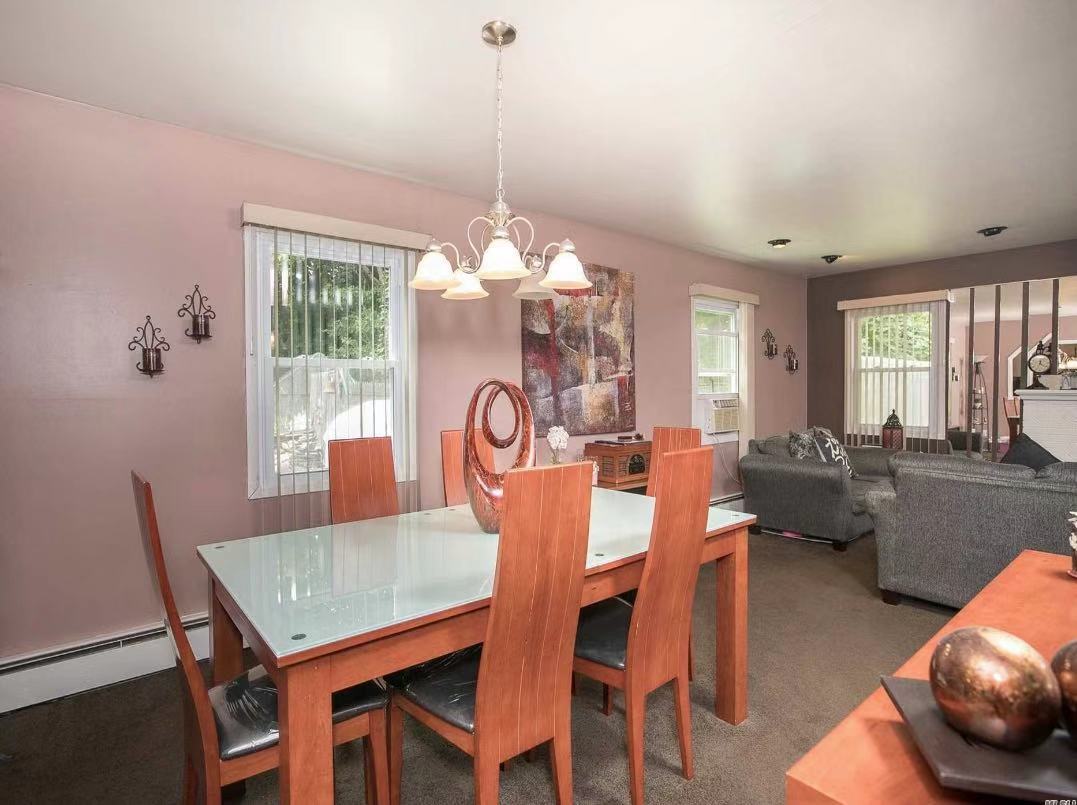 Address:6 Sandstone Ln,StonyBrook ,一家庭附带一个出租公寓,有两个出入口,共有五个卧室,三个全卫,有两个厨房,并可用餐在厨房,有两套洗衣烘干机,主要的住宅有三个房间二个卫生间,其中有一个大卧室带卫生间,一个大客厅,一个餐厅;附属的公寓有一个客厅,两个卧室,一个卫生间;后院很大,附风雨廊和设备间。屋况好,有两个餐桌,一套沙发,一个茶柜。设备齐全,水、电、热水、暖气、空调、网络全包,包括剪草吹树叶,不含铲雪和清除垃圾。只住五人,暂时只接受合租,租金共4200/一个月,参考分割租金大约主卧带卫生间1000,其他房间平均800,自行分配房间与租金。联系电话:Enhai Wu 5169875708,微信enhai1969727