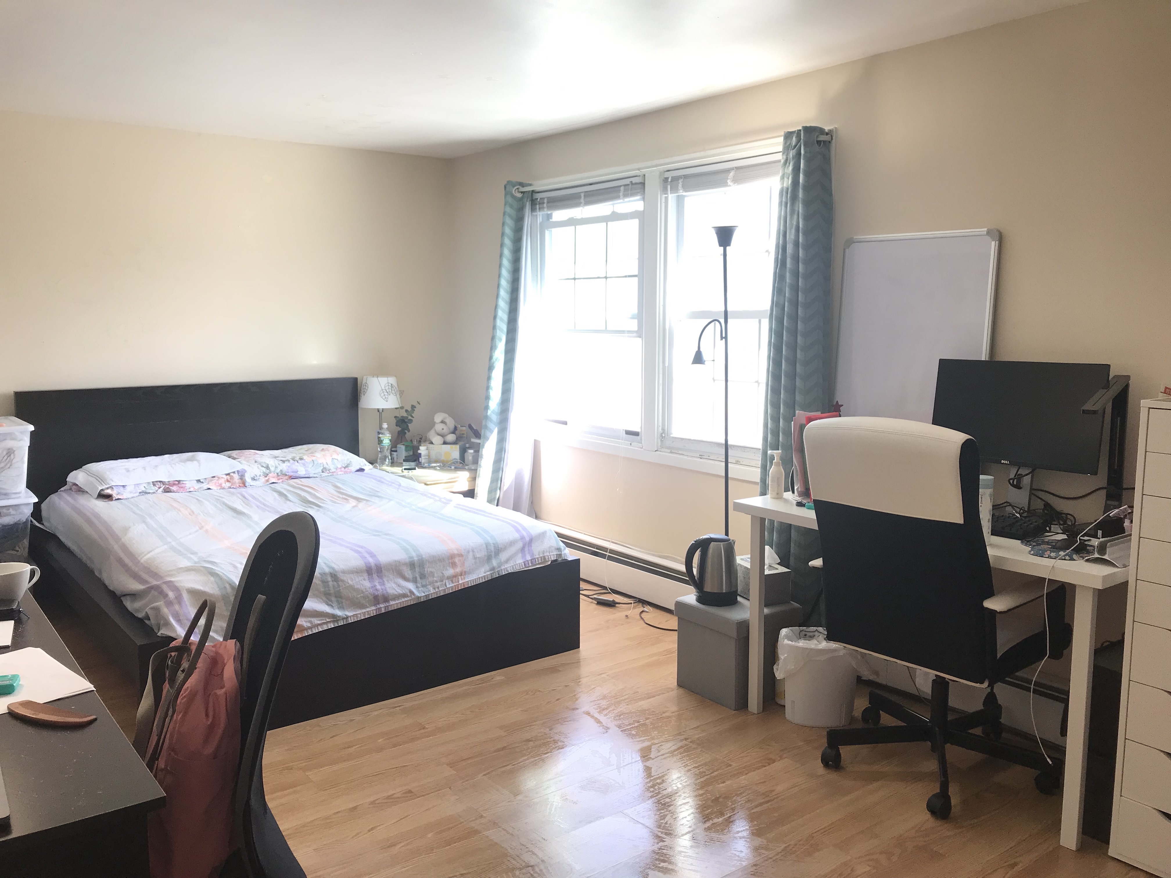 转租的卧室空间大,可1-2个人住,布局合理,阳光充足,可拎包入住,queen size床,嵌入式衣橱,桌子椅子等