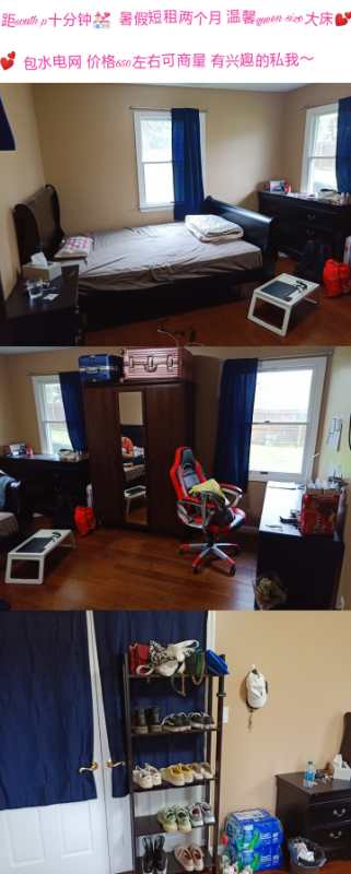 步行5分钟左右到south p多个单人间和带独立卫生间超大房间出租,2分钟到S60-69公交车站,水电网全包,超级大厨房,冰箱,微波炉,及烤箱,全新洗衣机烘干机,全新家具,床,书桌椅子,床头柜及壁橱,现在的室友很好相处都是中国留学生,房东不在这里,房子周围邻居有好,生活便利,步行可到达中国超市各种餐馆,欢迎有需要的小伙伴随时联系看房,五月二十三可入住,长期短期均可6319536673微信wwww16319536673