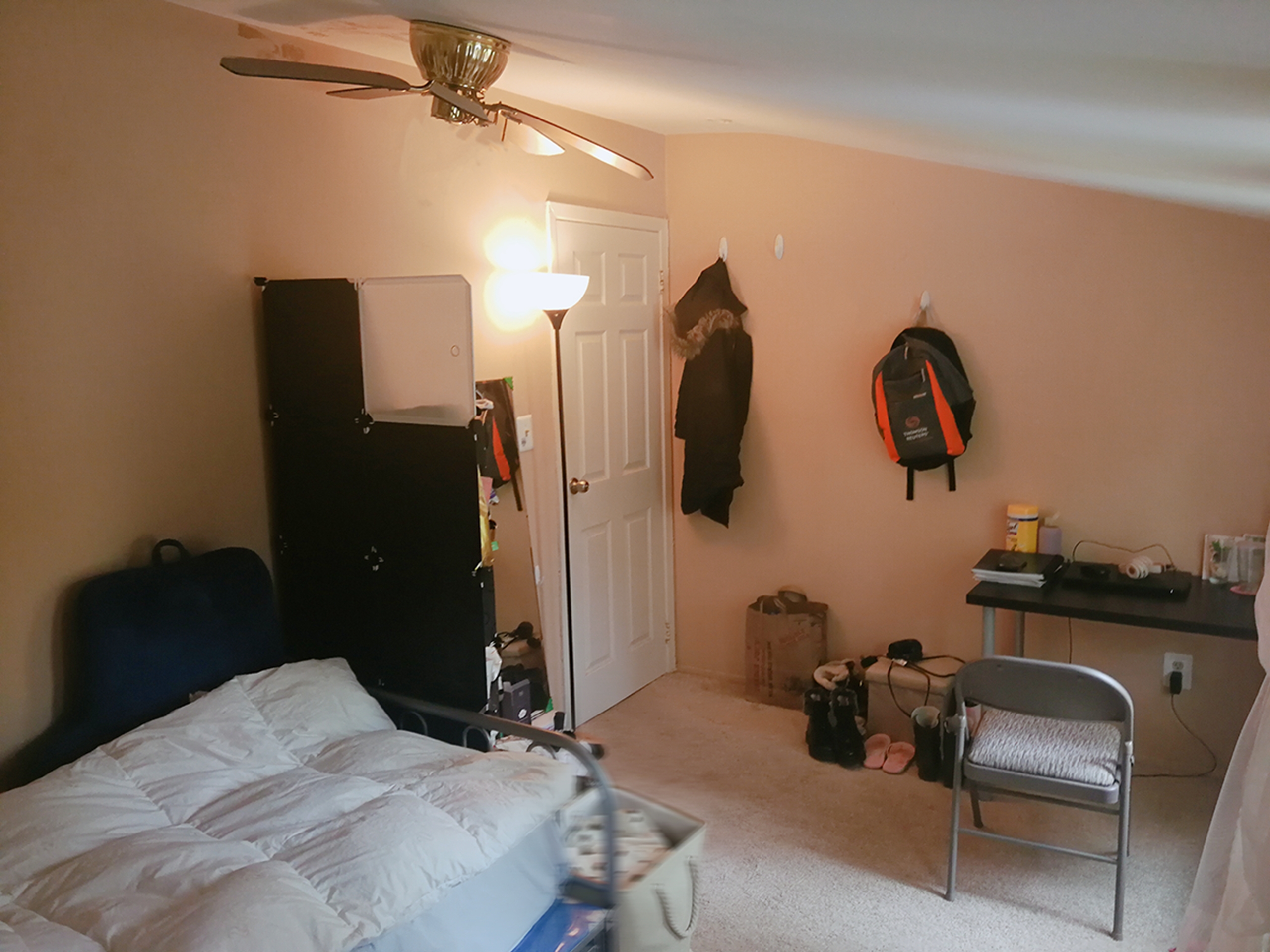 有桌椅,落地灯,置物柜,twins床,床垫,吸尘器,大的walk in衣柜。
