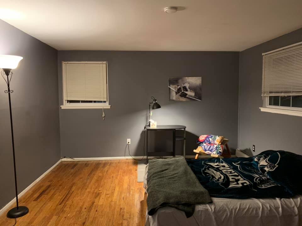 Housemates include 1 gal, 3 guys, and a cat. Utility average $60/mo. depending on the season. The house is on a corner lot so street parking is plentiful. The neighborhood we live in is very quiet. The neighbors are working class and most are families with young kids.