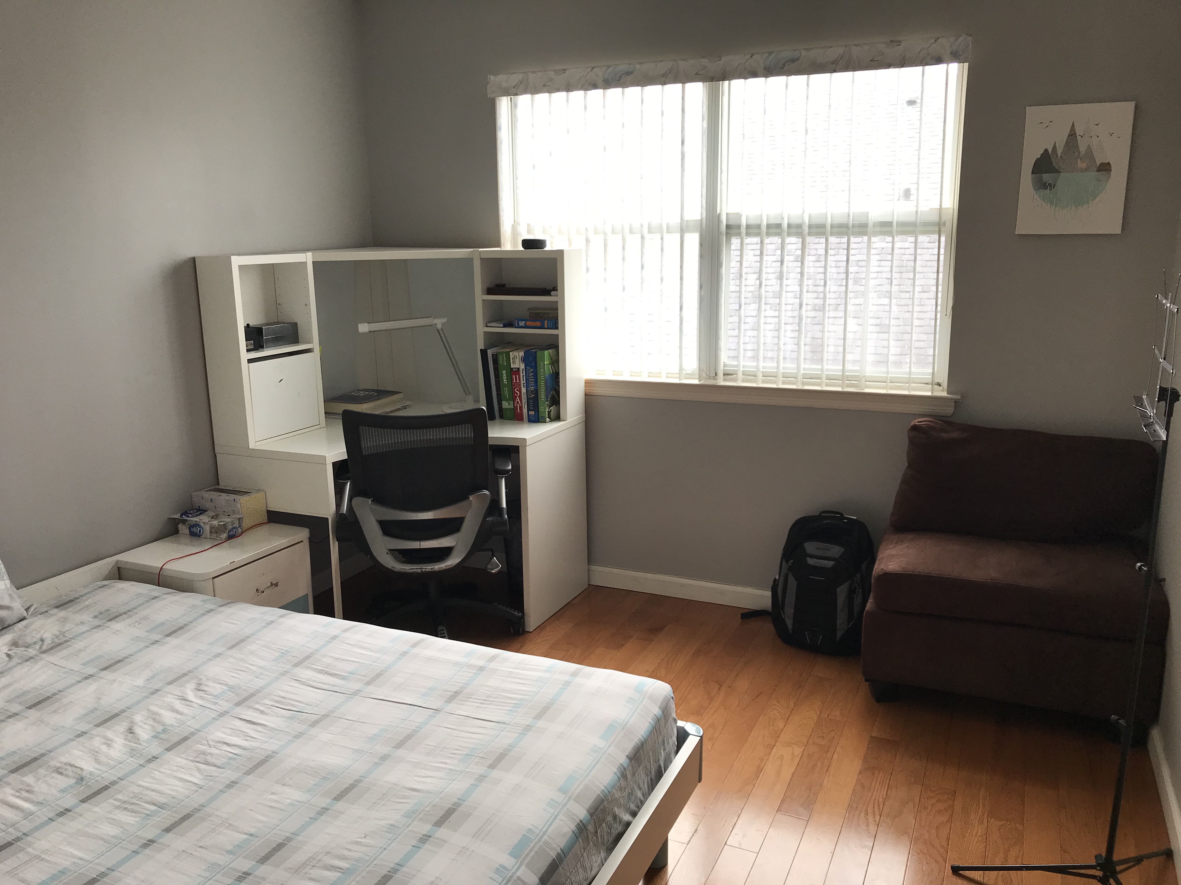 位于五星级全封闭管理独栋别墅小区内,二十四小时门卫,有前后大花园。房间带东向大窗与入墙衣柜,配Full Size床、书柜、书桌和椅子,免费提供水电煤暖网、洗干衣和车位,近LIE62和63出口,离SBU和BNL十迈,适合少炊及有车人士,月租$800起。请即电/微业主:631-703-8968/S10049276。