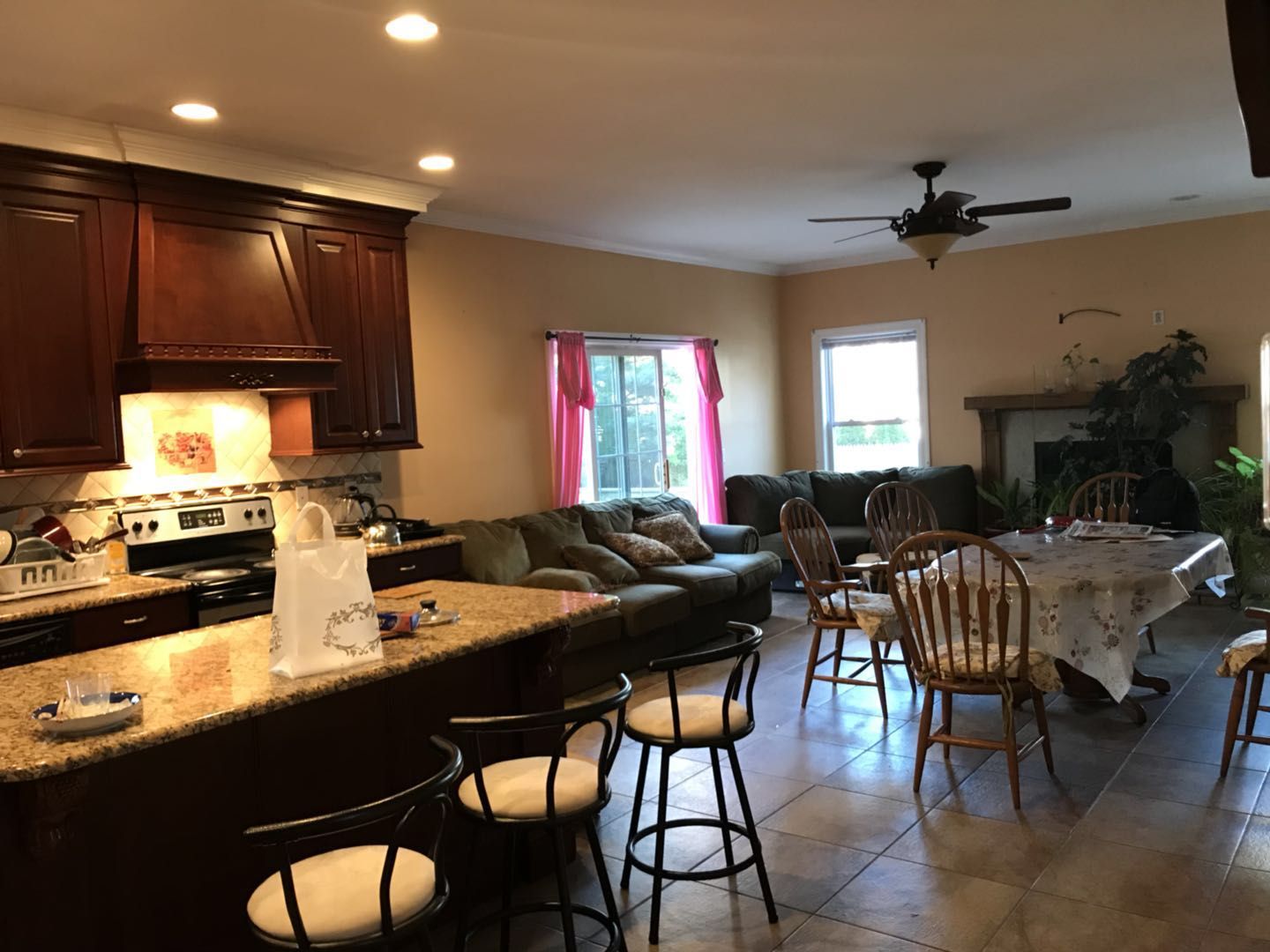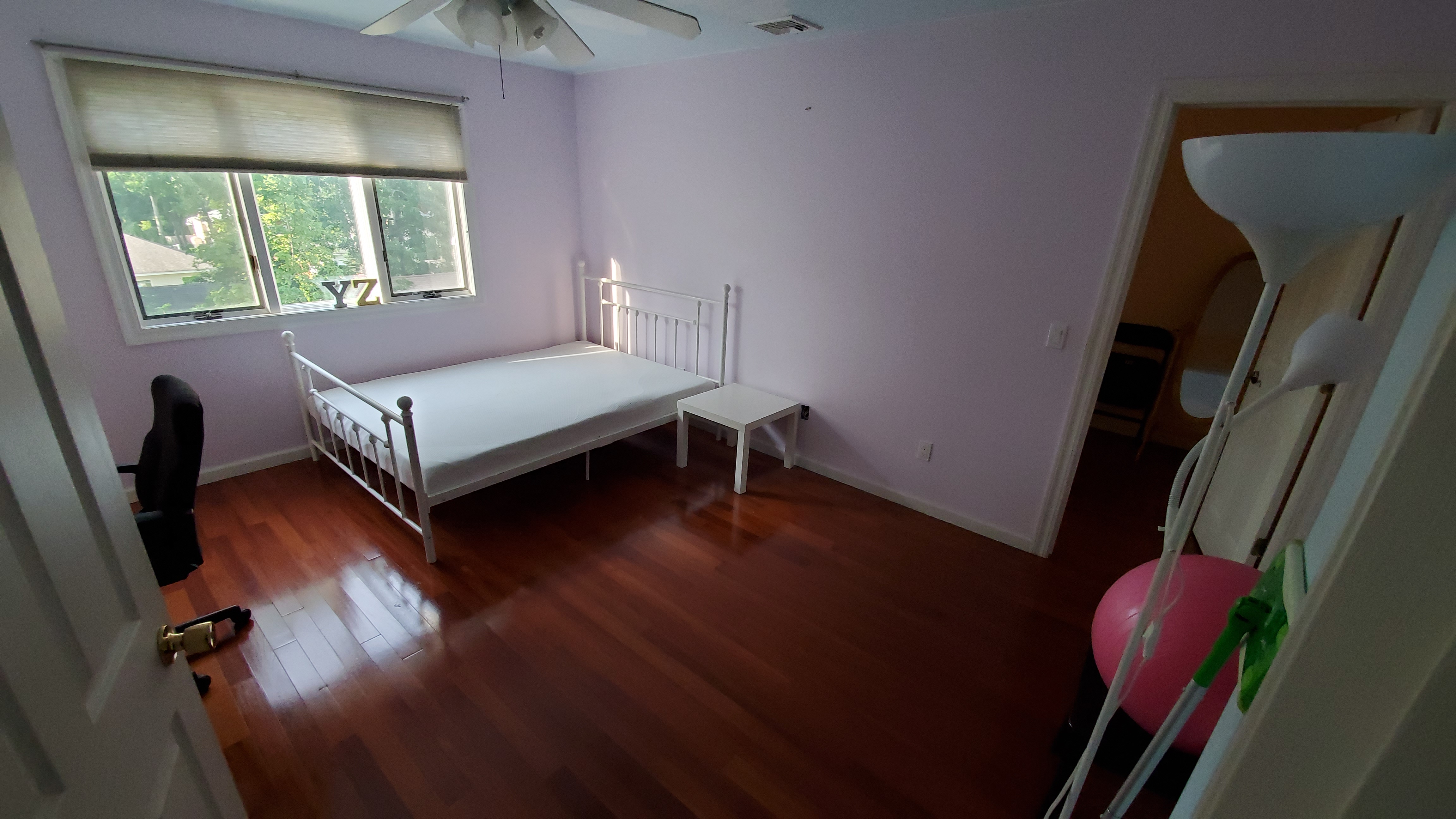一共五个房间,两个卫生间,出租的是楼上三间中的一间和楼下的一间。室友都非常随和安静。设施齐全,床,桌椅,洗衣机,烘干机,冰箱,微波炉,洗碗机,中央空调都有。