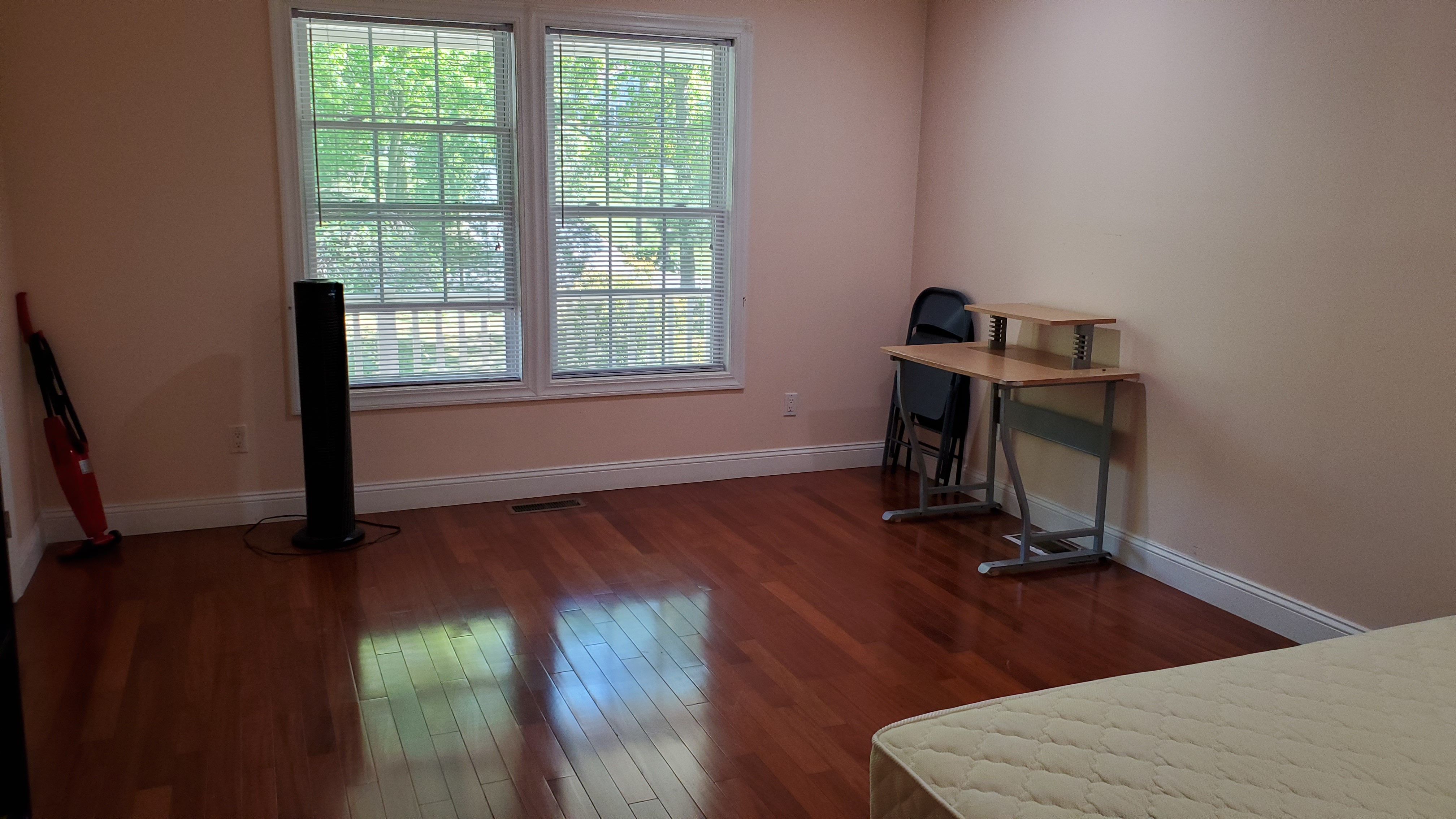 一共五个房间,两个卫生间,出租的是楼下的一间。室友都非常随和安静。设施齐全,床,桌椅,洗衣机,烘干机,冰箱,微波炉,洗碗机,中央空调都有。