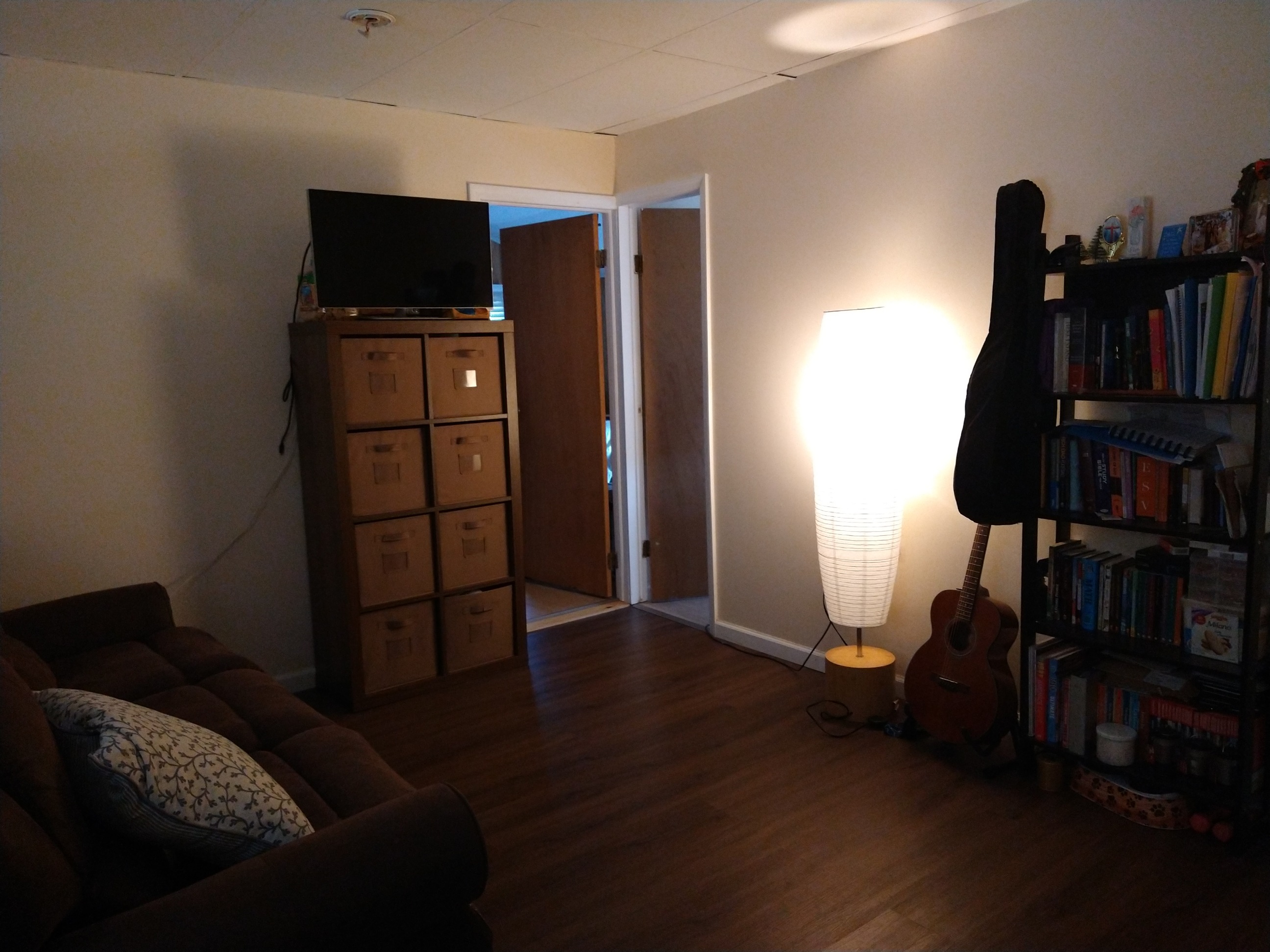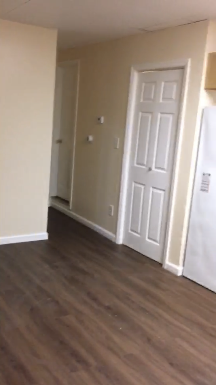两房一厅一厨房一厕所(一个大房间和一个小房间), 有洗衣机和晾衣服的地方, 有两个怕车位。月费1550 包水电冷气暖气。 欢迎爱干净的小家庭。