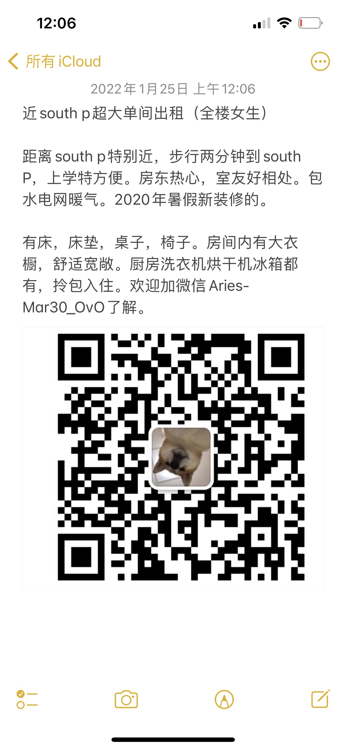 女生 超大房间 South P 走路两分钟到south P