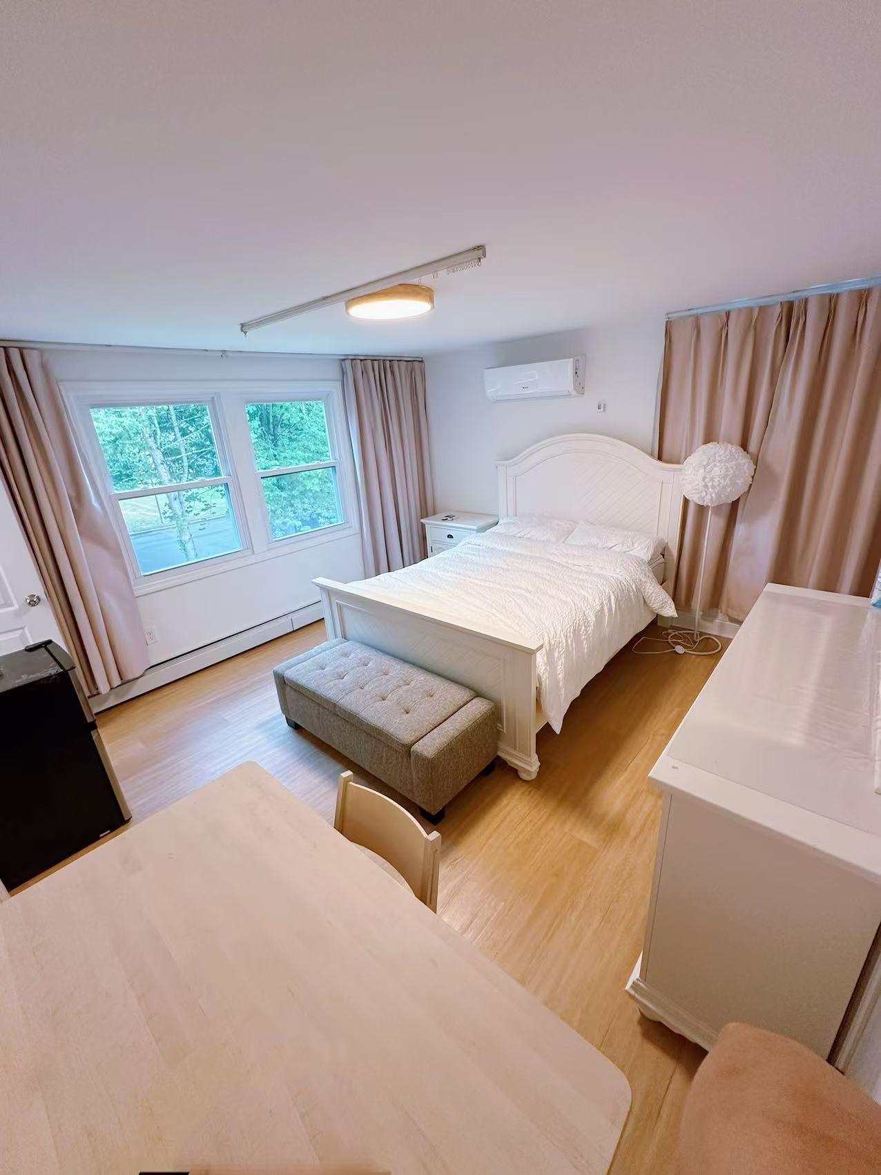 全新装修,配独立全新冰箱,卧室门为指纹密码锁,全智能可调节吸顶灯,超大衣橱、书桌、椅子、全新宜家床、床垫。卫生间两人共用,公共区域家具家电齐全,有高档餐桌、椅子、沙发、茶几。包水电网费, 包家电微波炉,冰箱、洗衣机和烘干机等。还可选择包吃、包打扫卫生!每天可帮购买任何中国超市产品!户外有充足的车位。欢迎喜静、爱干净、爱学习的中国女留学生入住!
