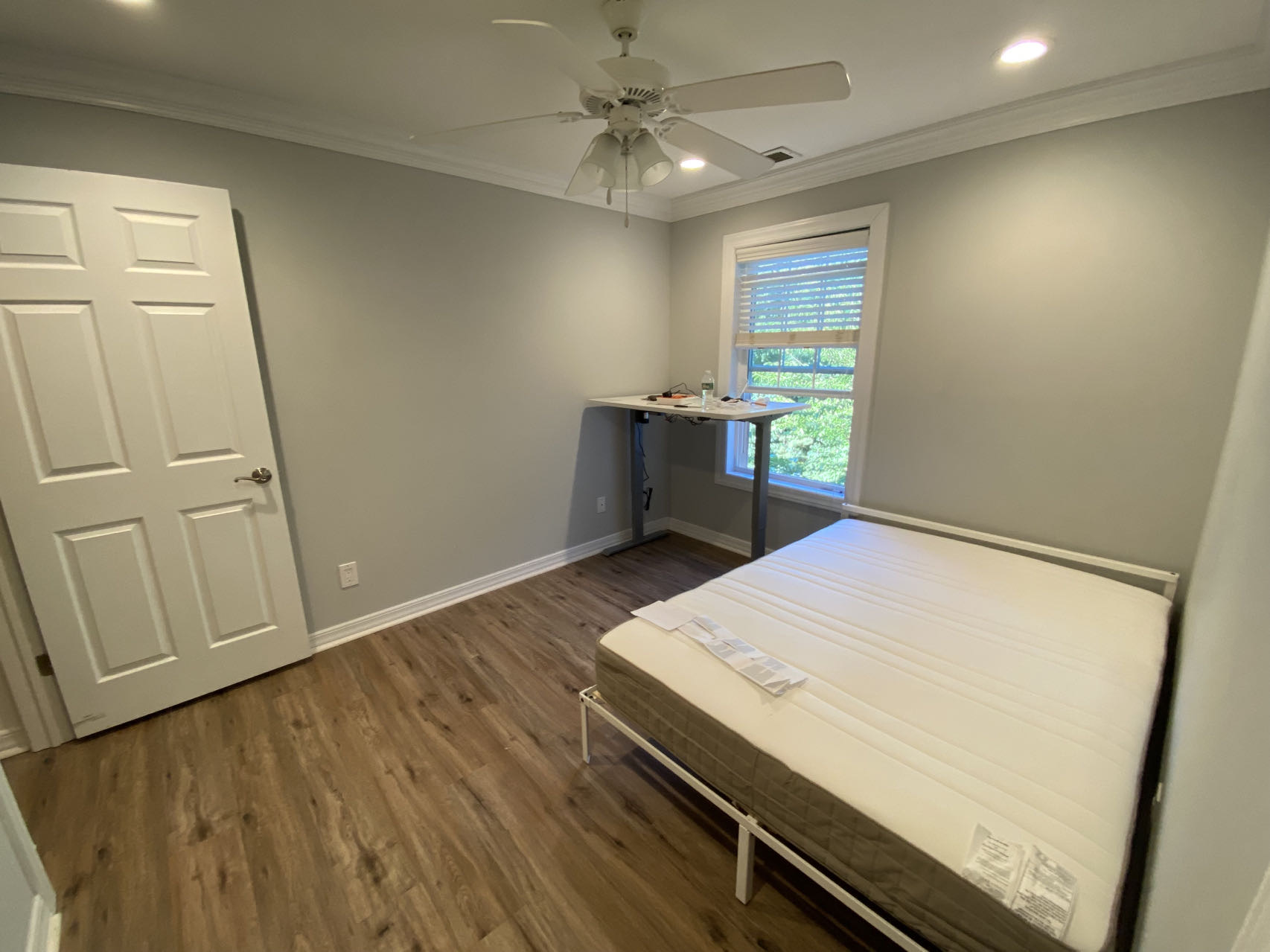 是floorplan里左边的那2个房间,其中一个有walk-in.closet。 两个房间室友留了桌子和full size bed frame +/- mattress if needed 实木地板