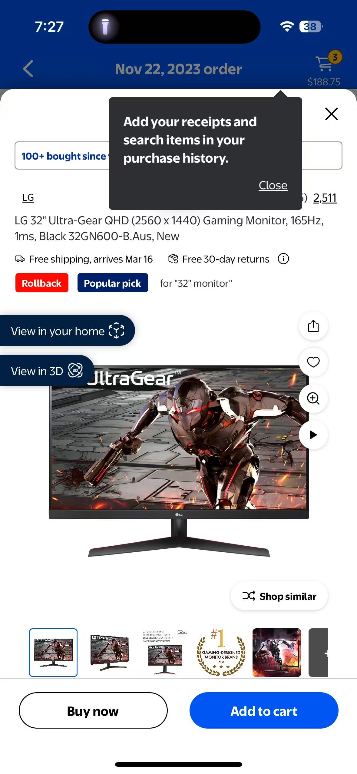 超低价出显示器 32 寸 2k 165 hz 加显示器臂