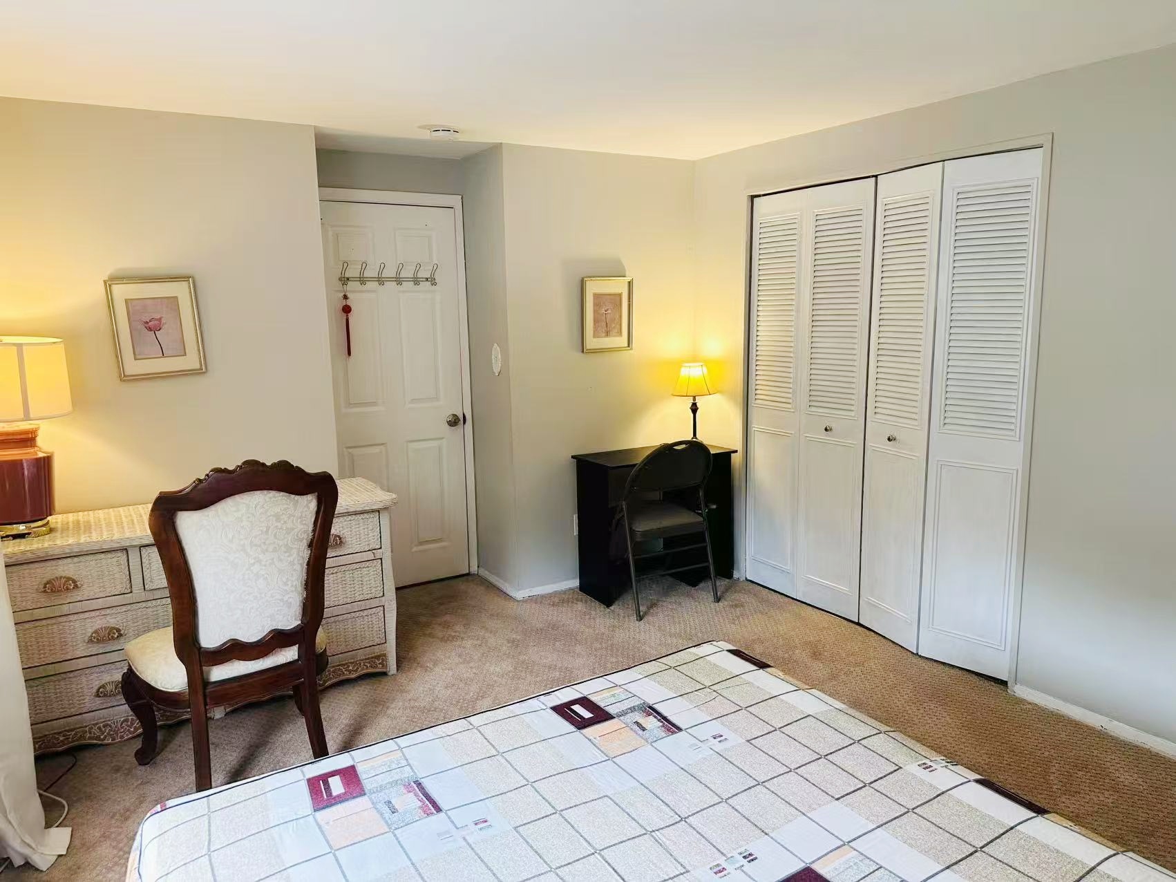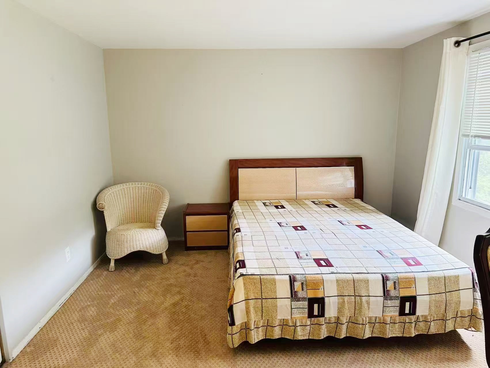 二楼房间明亮宽敞,带衣橱、书桌、椅子和双人床。公共区域家具齐全,有餐桌、椅子、沙发、茶几。包水电网费, 包家电微波炉,冰箱、洗衣机和烘干机等。户外有充足的车位。欢迎喜静、爱干净、爱学习的中国女留学生入住!